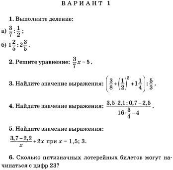 Контрольная работа по математике 6 класс: деление, дробные выражения