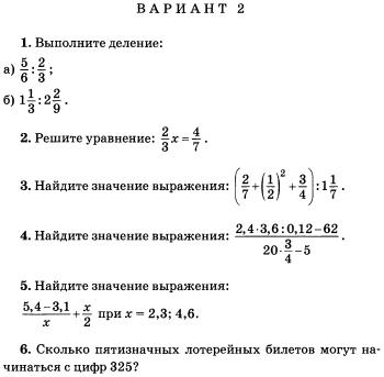 • Контрольная работа по математике 6 класс: дроби, смешанные числа