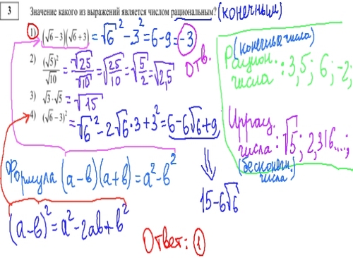 В следующем задании демоверсии гиа по математике 2013, мы должны найти рациональное число, т.е. число имеющее конечное значение. Здесь также необходимо вспомнить свойства квадратных корней.