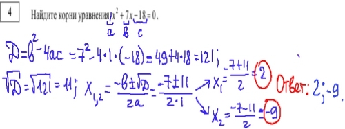 4-ое задание по математике из демоварианта ГИА 2013 очень простое - нужно решить квадратное уравнение по дискриминанту, или найти корни уравнения. Главное здесь - знать формулы!