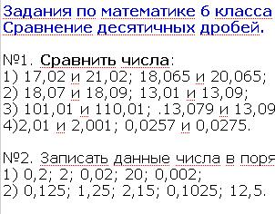 Категория -> Учебные материалы, Задания по математике 6 класс