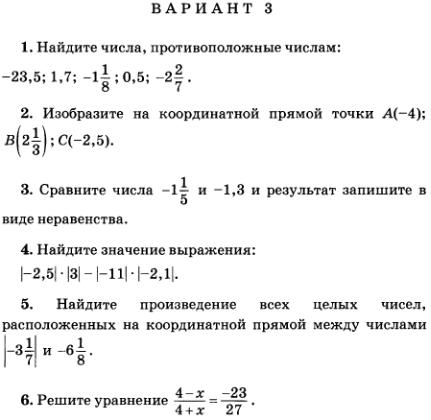 Контрольная работа по математике за 6 класс - Модуль числа, сравнение чисел