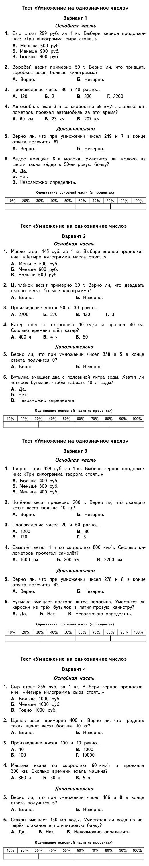 Тест по математике 3 класс - Умножение на однозначное число Смотрите онлайн и распечатайте