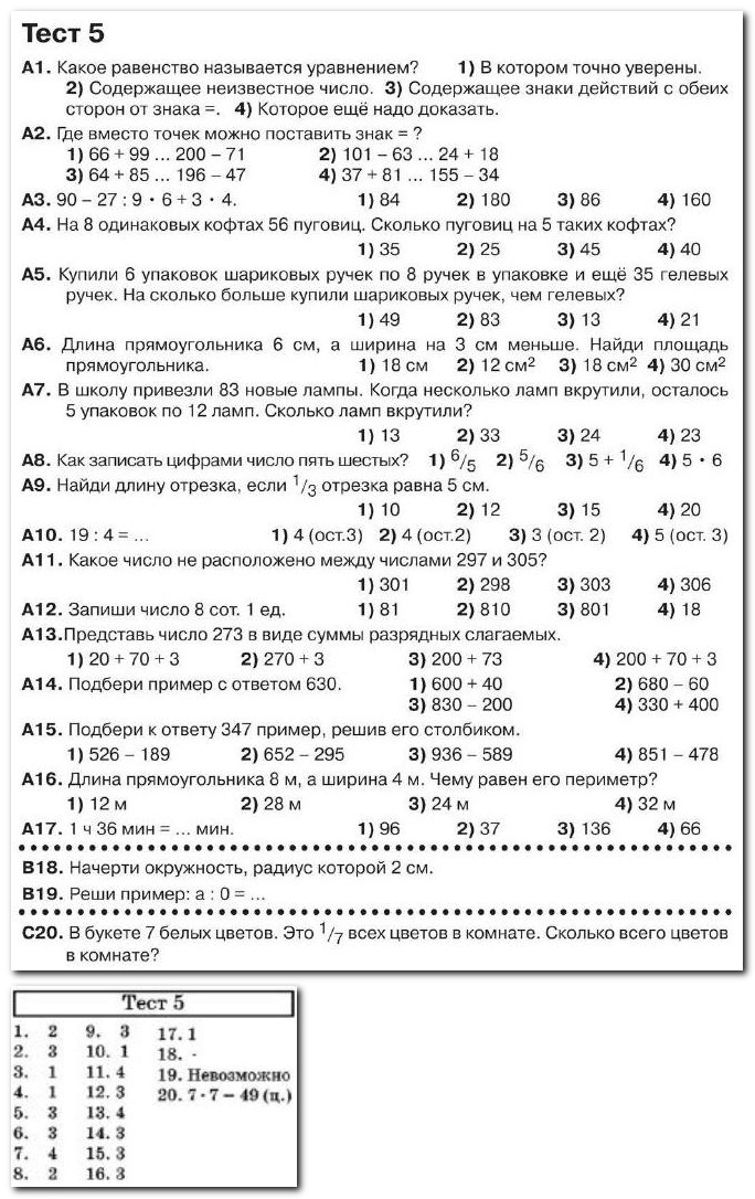 Математика 3 класс - Итоговое тестирование №5