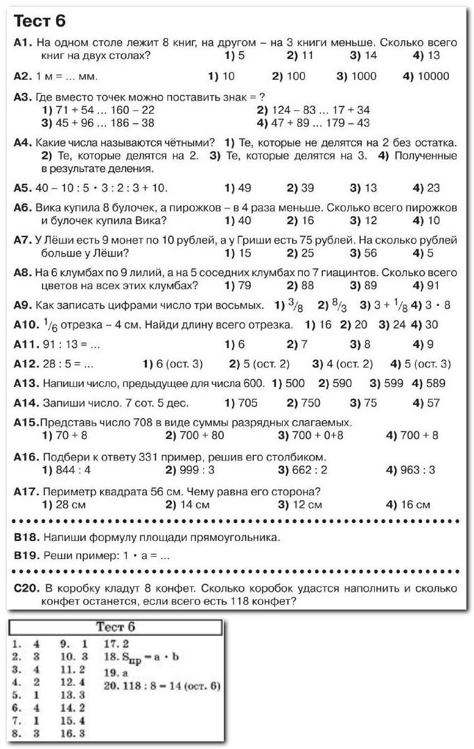 Математика 3 класс - Итоговое тестирование №6