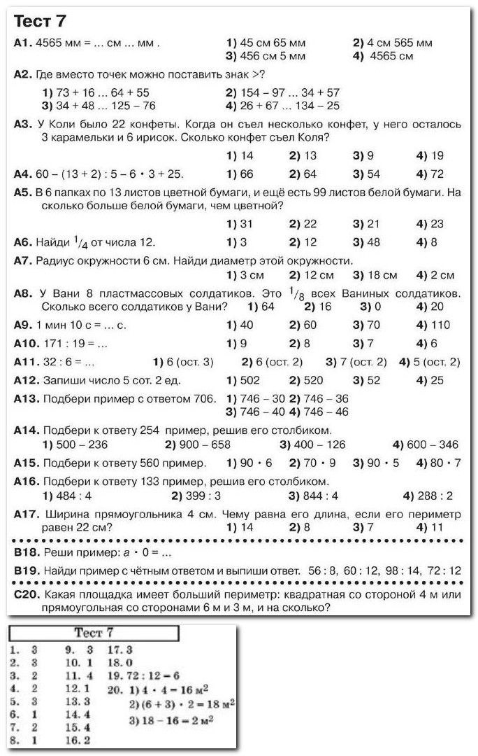 Математика 3 класс - Итоговое тестирование №7