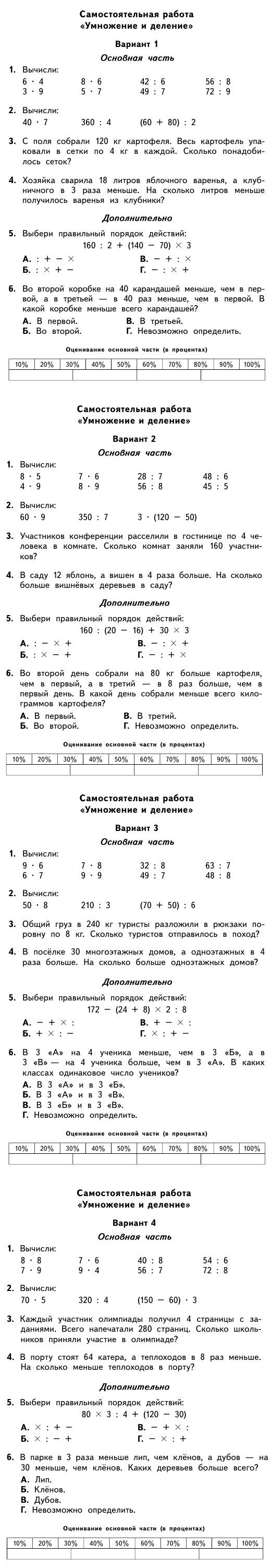 Самостоятельная работа по математике 3 класс - Умножение и деление