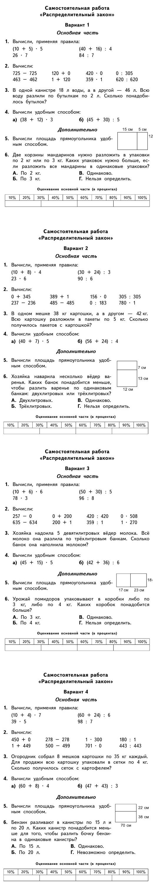 Самостоятельная работа по математике 3 класс - Распределительный закон