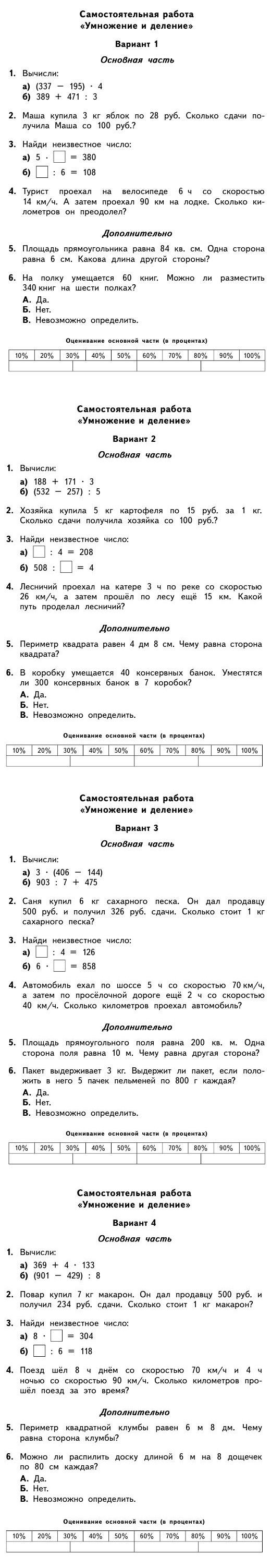 Самостоятельная работа по математике 3 класс - Умножение и деление